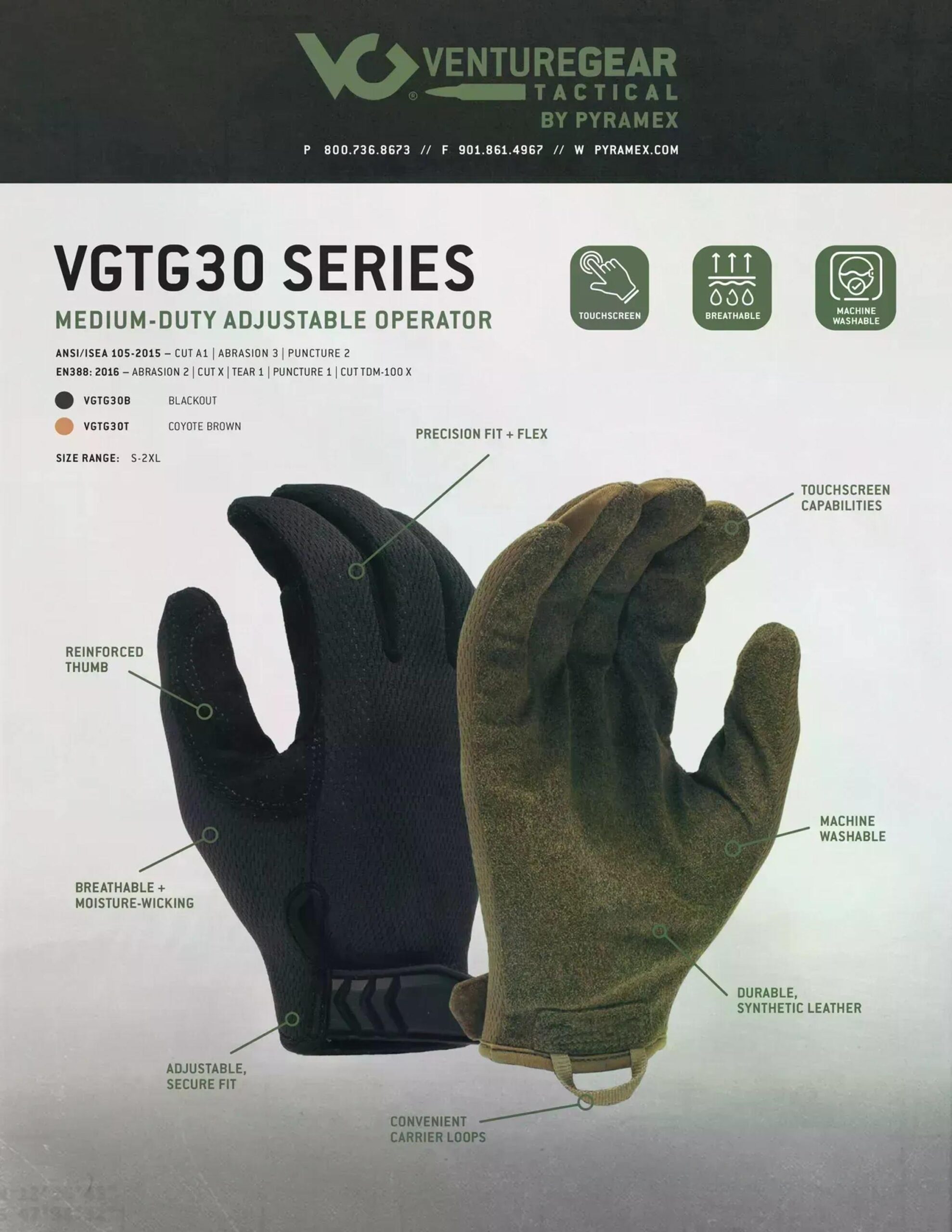 Тактические перчатки VGTG30 SERIES Medium-Duty Operator Glove от Venture Gear Tactical (США)
