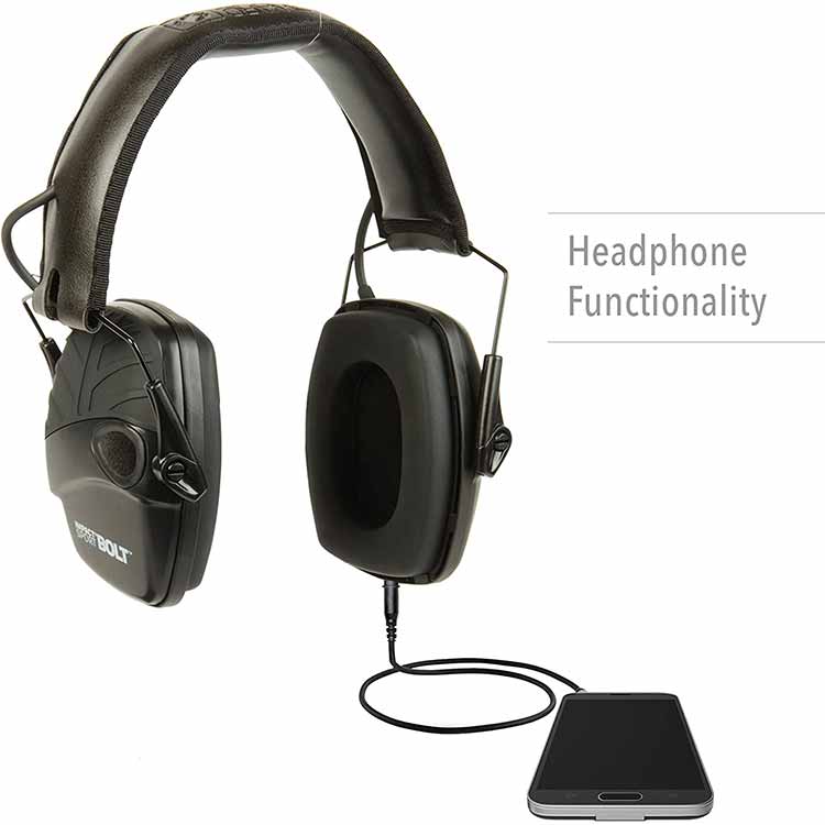 Тактические наушники Ховард Лейт Импакт Спорт БОЛТ , оснащенные цифровым процессором, который управляет усилением звука в 250 раз быстрее, чем любая из предыдущих моделей электронных средств защиты органов слуха.