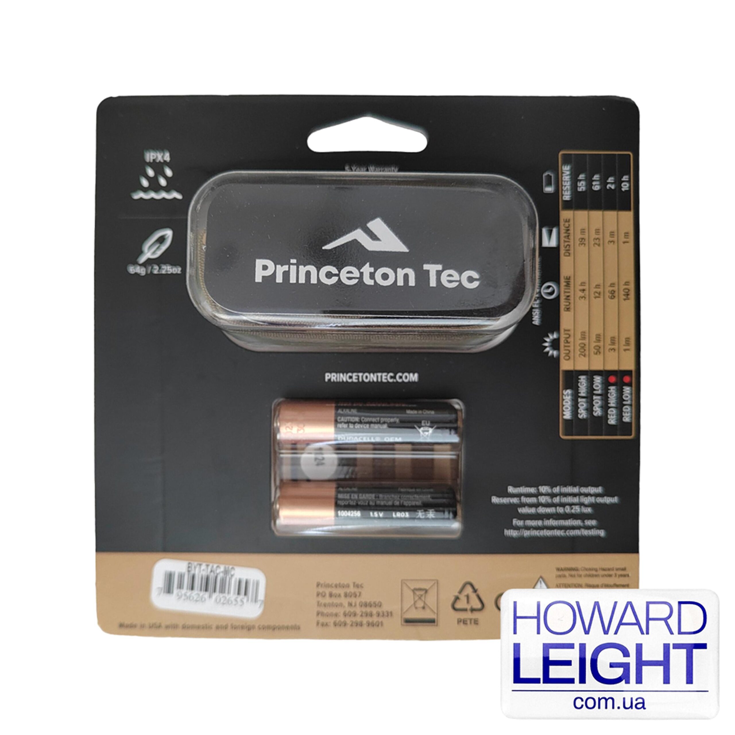 В качестве световых элементов используются Maxbright и Ultrabright от Princeton Tec. Фонарь работает на батарейках типа AAA и при этом световой поток достигает 200 люмен, чего хватает на освещение на расстояние до 39 метров. Byte Tactical имеет 4 режима работы (2 для белого света и 2 для красного света) и защиту от пыли и воды.