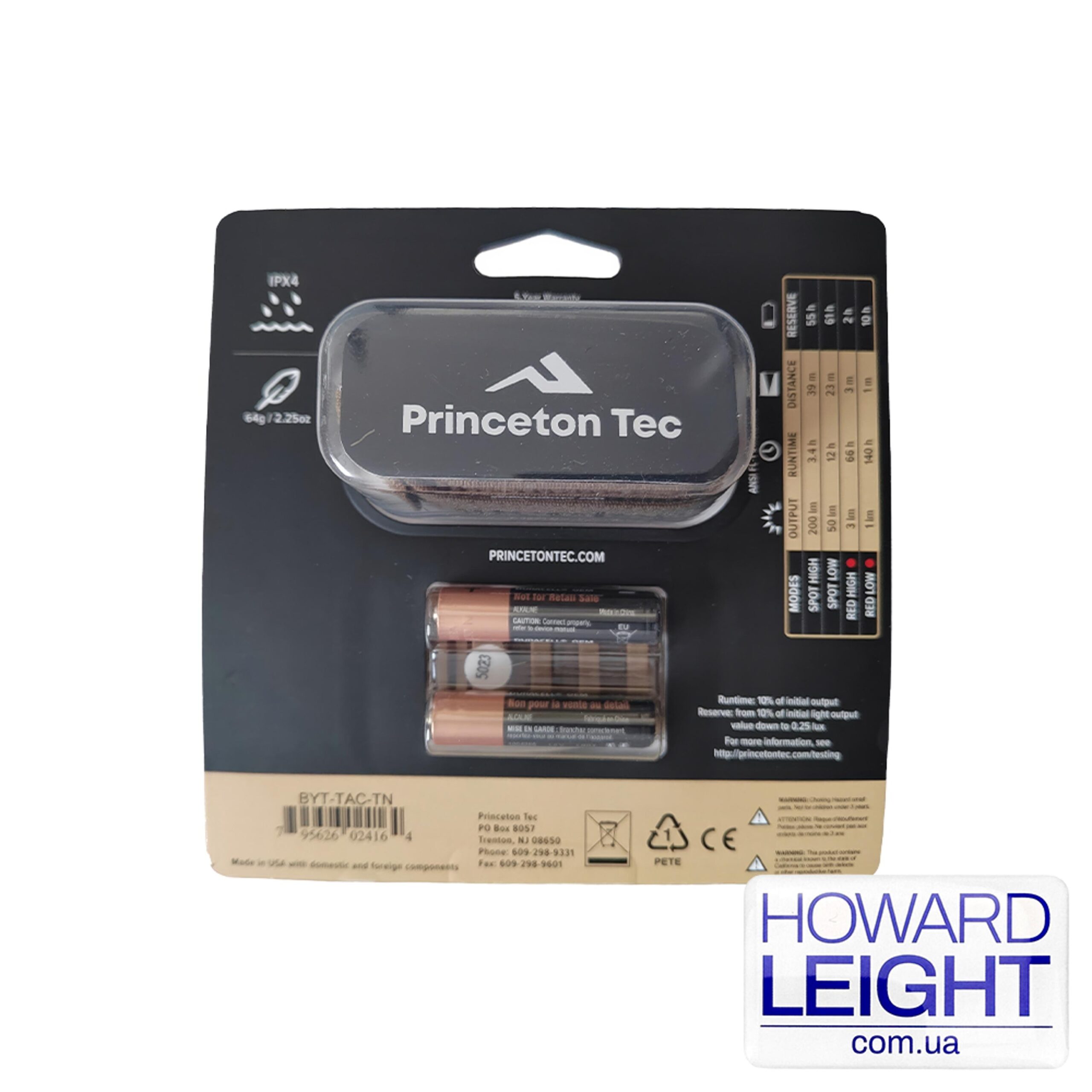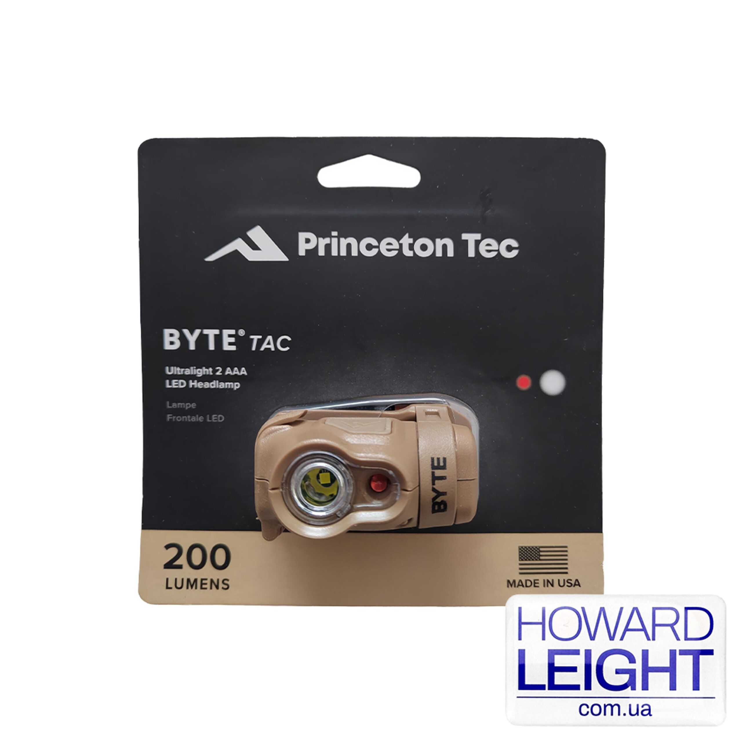 В качестве световых элементов используются Maxbright и Ultrabright от Princeton Tec. Фонарь работает на батарейках типа AAA и при этом световой поток достигает 200 люмен, чего хватает на освещение на расстояние до 39 метров. Byte Tactical имеет 4 режима работы (2 для белого света и 2 для красного света) и защиту от пыли и воды.