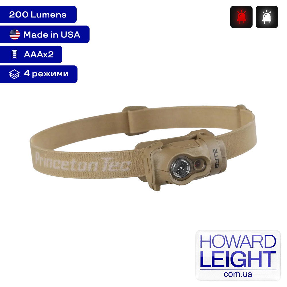Благодаря мощному светодиоду с максимальной яркостью 200 люмен, Princeton Tec Byte Tan обеспечивает четкое и яркое освещение окружающего пространства. Фонарь имеет четыре режима работы (2 для белого и 2 для красного света)
