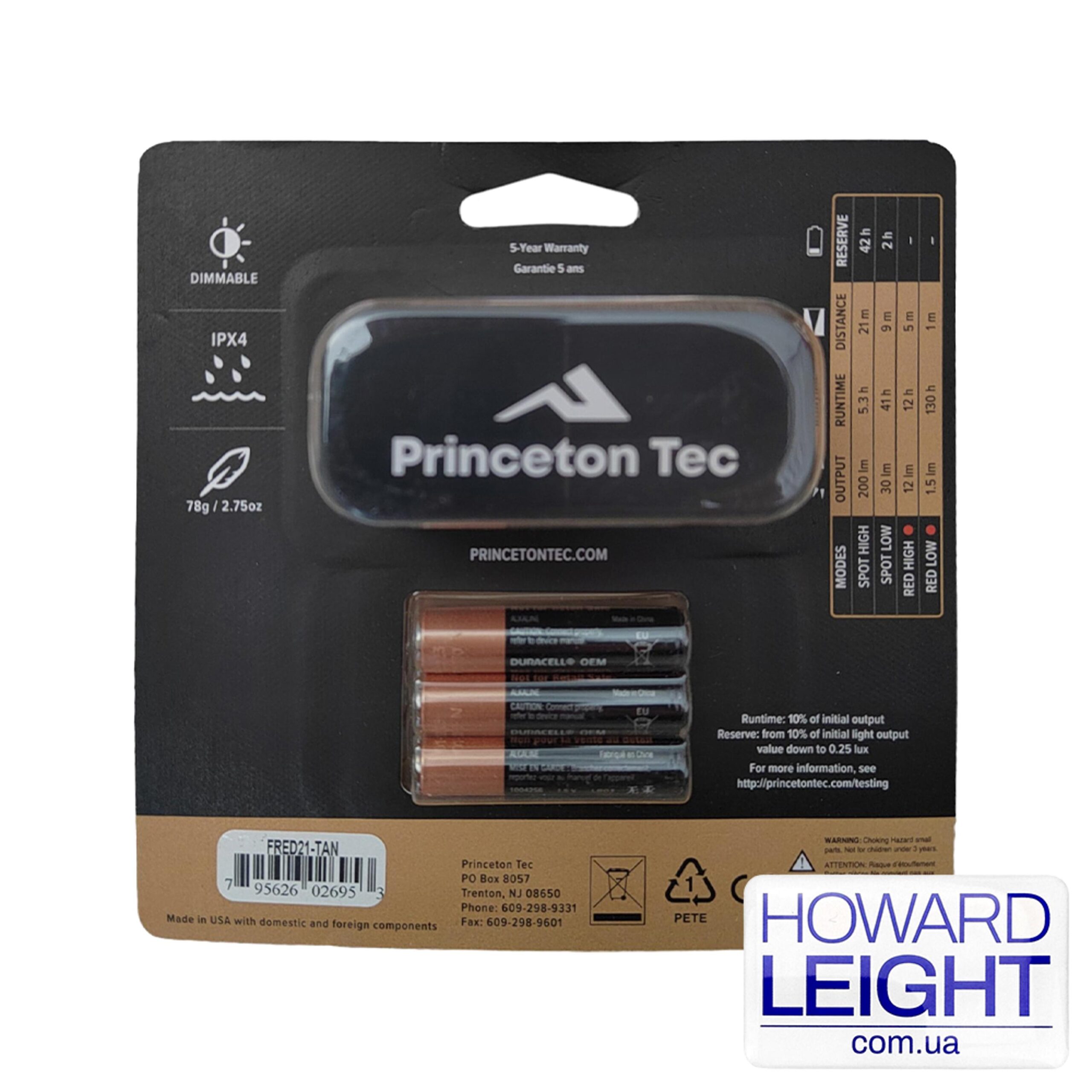 Налобный фонарь Princeton Tec Fred Tan 200lm оснащен пластиковым корпусом, который обеспечивает надежность и долговечность. Кроме того, этот налобный фонарь водонепроницаемый, что позволяет использовать его даже в дождливую погоду или в условиях влажности.