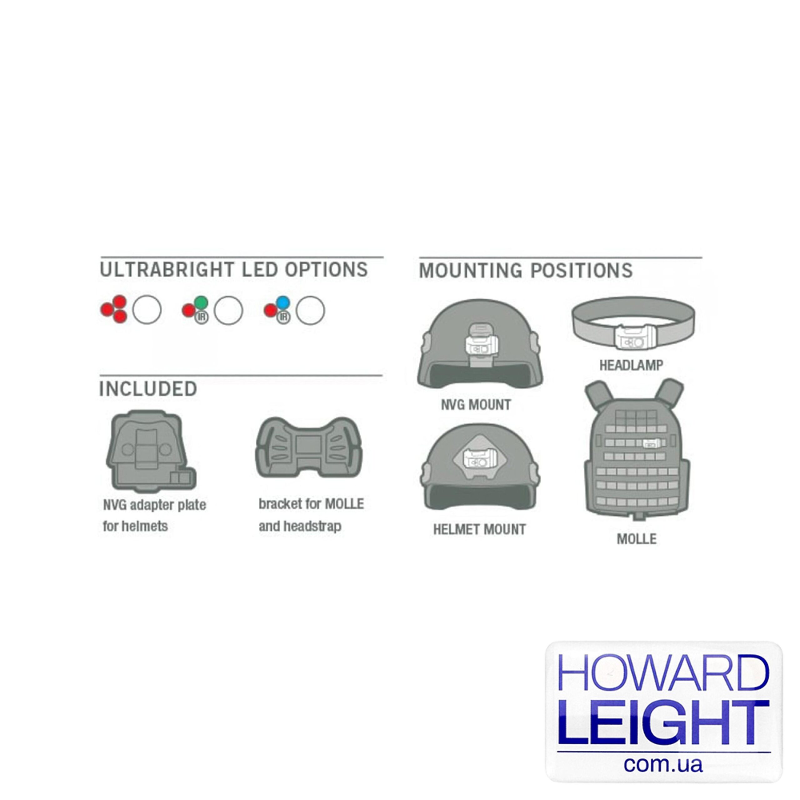 В комплект поставки входит налобная повязка в цвете Tan, переходник на крепление под платформу для ПНБ типа