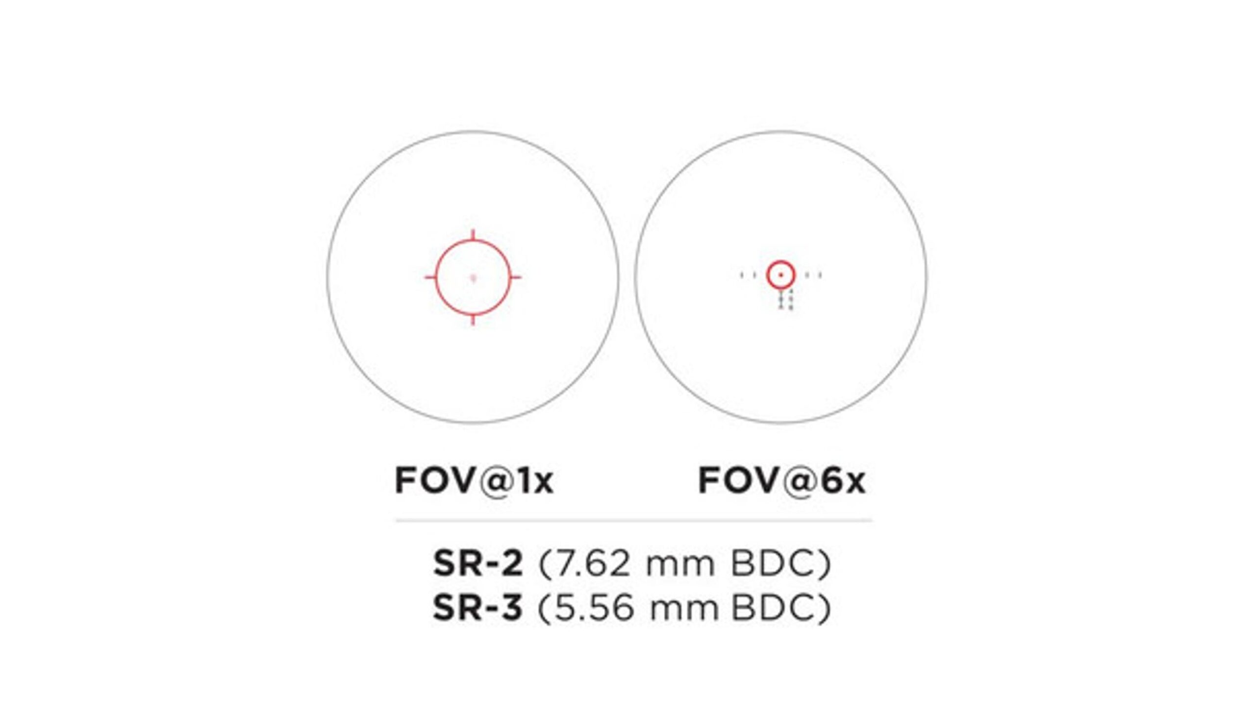 - Поле зрения на 100 ярдов: 1x: 102.4 фута; 6x: 16.7 фута
