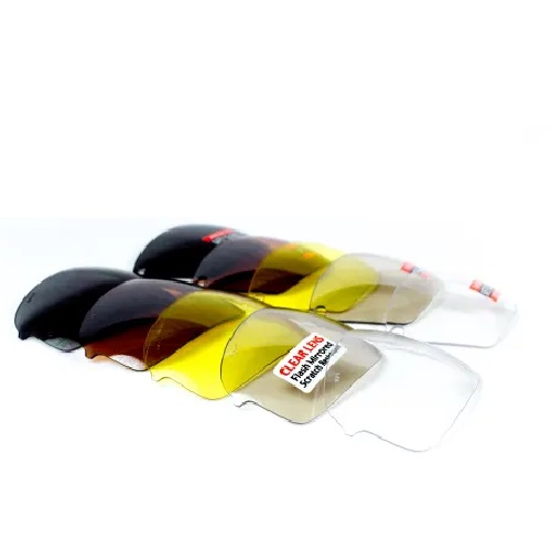 - сменные линзы (в комплекте: чёрные, жёлтые, прозрачные, дымчатые и коричневые);