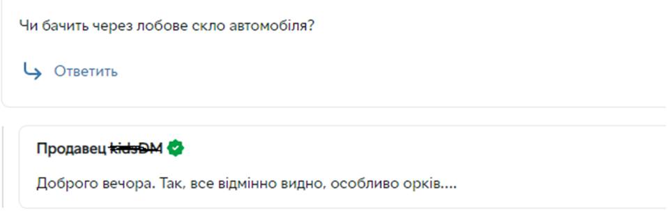Як приклад відповідь нечесного продавця на запитання, чи можна використовувати NVG10 для водіння автомобіля вночі без фар: